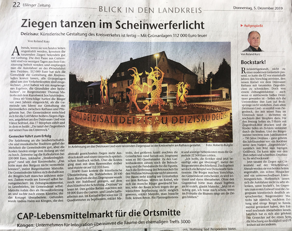 Im Deizisauer Kreisverkehr tanzt der Ziegenbock mit seiner Frau im Unterrock….